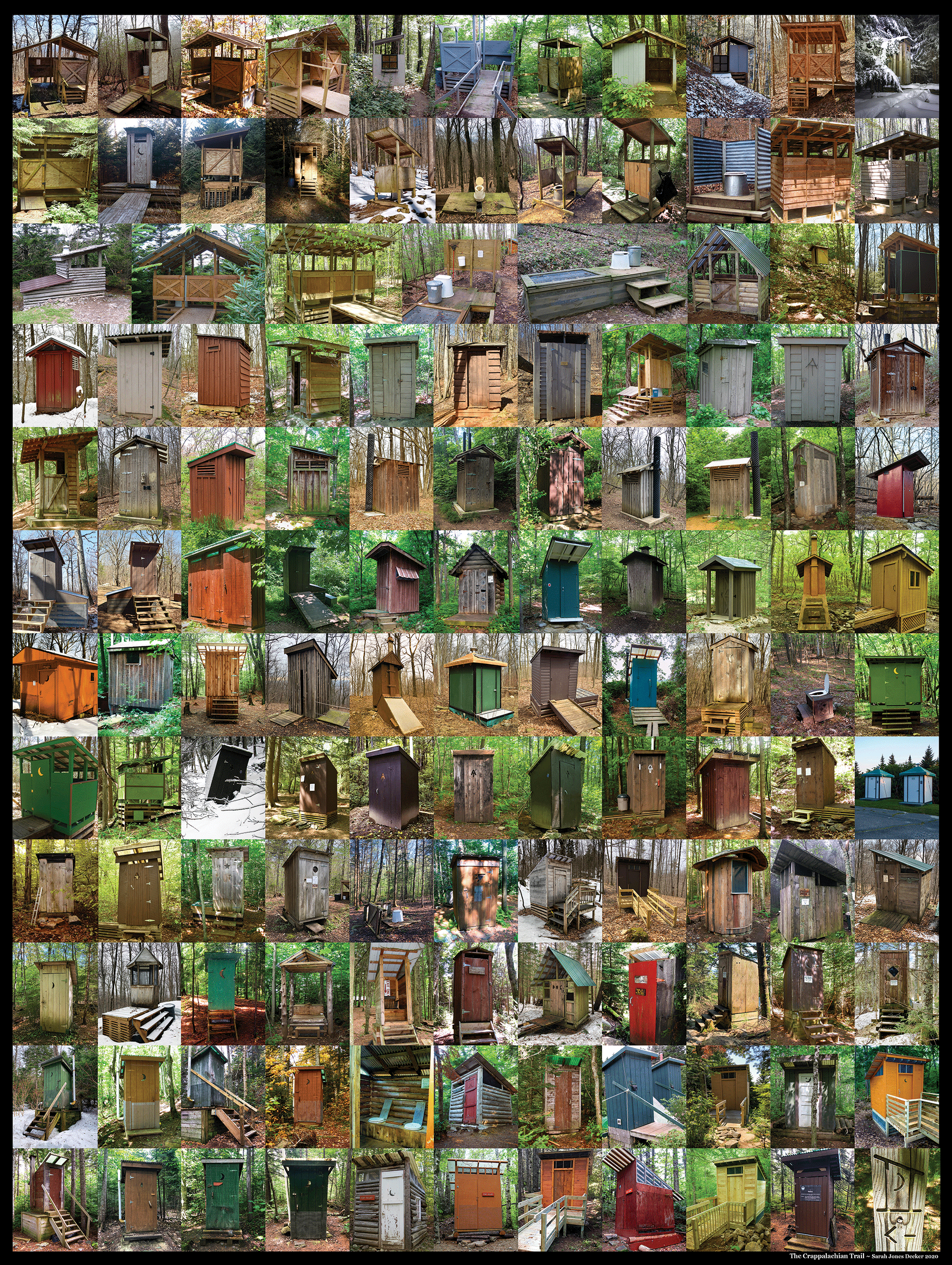 The Privy Poster - aka the Crappalachian Trail. The poster you didn’t know your bathroom needed. The Privy Poster is comprised of 132 different privies on the Appalachian Trail, in chronological order. It is not EVERY privy on the trail - but a cool sampling of styles from GA-ME.